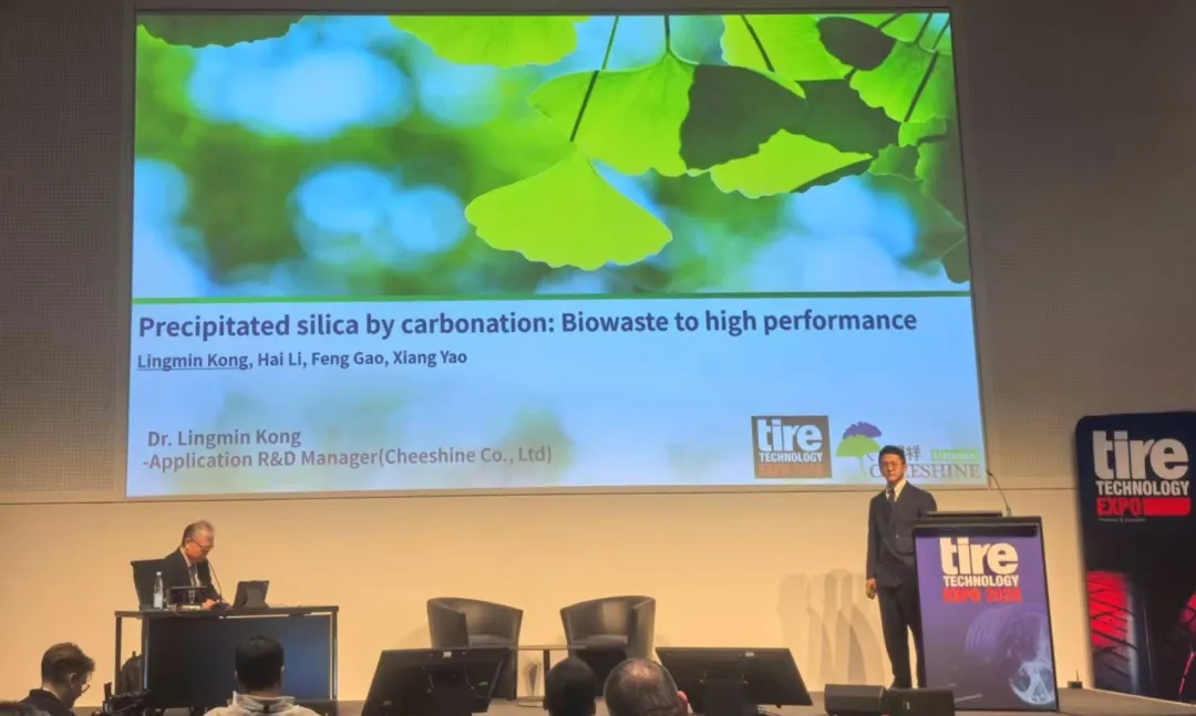 在展会官方技术研讨会上,麒祥技术团队连续发布两场专题报告,首次公开“以碳治碳”碳分沉淀工艺。该技术以稻壳为原料提取核心成分,并在生产过程中循环利用二氧化碳替代传统硫酸,实现60%的减排效果,可产出高分散性、比表面积可调的生物基白炭黑,为绿色轮胎胎面材料开发提供了新路径。