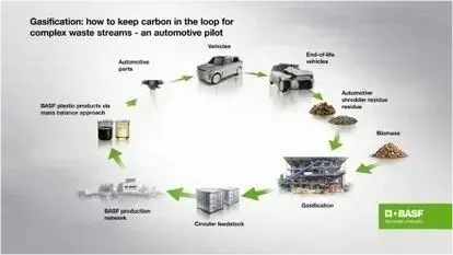项目中,研究团队首次通过气化工艺回收纯汽车废料与生物质混合废物流。产生的回收原料(合成气及其衍生物)在巴斯夫一体化价值链中替代了化石原料。巴斯夫采用质量平衡法生产了方向盘所需的聚氨酯配方。