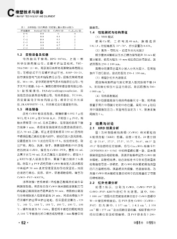 间膜的制备。将改性后的 CsWO 纳米颗粒按照配方与 如图 2 所示,分别为 CsWO、CsWO-PVP 及