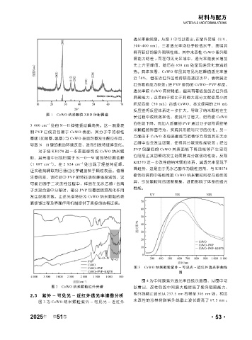 图 2 CsWO 纳米颗粒红外光谱 以看出,改性后的中间膜大幅提高了紫外阻隔能力,