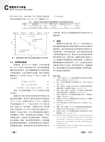 化胶,根据 100 ℃老化模型,计算得出采用 1 配方硫 [8] 凌晓,汪艳,贺俊堃,等 . 三元乙丙橡胶耐热多楔带楔胶配方