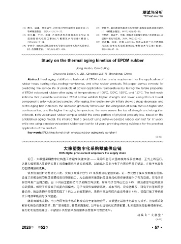 2020(46):12-14. [17] 张 作 鑫, 林 尧, 邓 涛 .445/DDA 防 老 体 系 对 三 元 乙丙 橡 胶