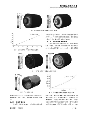 最大等效应力增大 1.6 倍,扭转后等效位移量与其相 得结果如表 1 所示。从表中数据可知,双骨架镂空衬