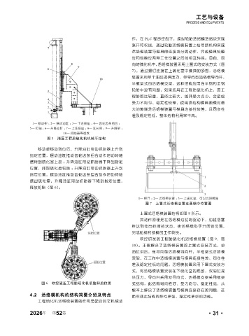 图 6 软控液压工程胎硫化机装胎卸胎位置 式结构,此结构导向性好、受力均匀、稳定性高,从