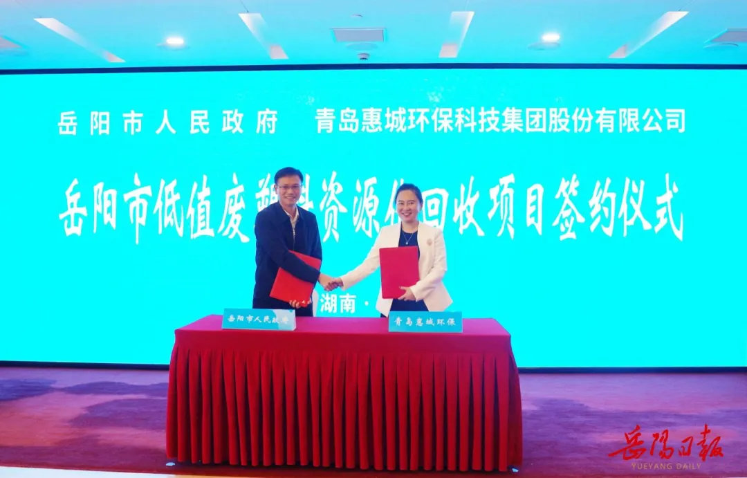 近日,岳阳市人民政府与青岛惠城环保科技集团股份有限公司签署系列合作协议,共同推动废塑料资源化利用项目正式落地。该项目总投资约100亿元,规划建设150万吨级混合废塑料资源化利用基地,标志着岳阳在构建循环经济产业体系方面迈出关键一步。