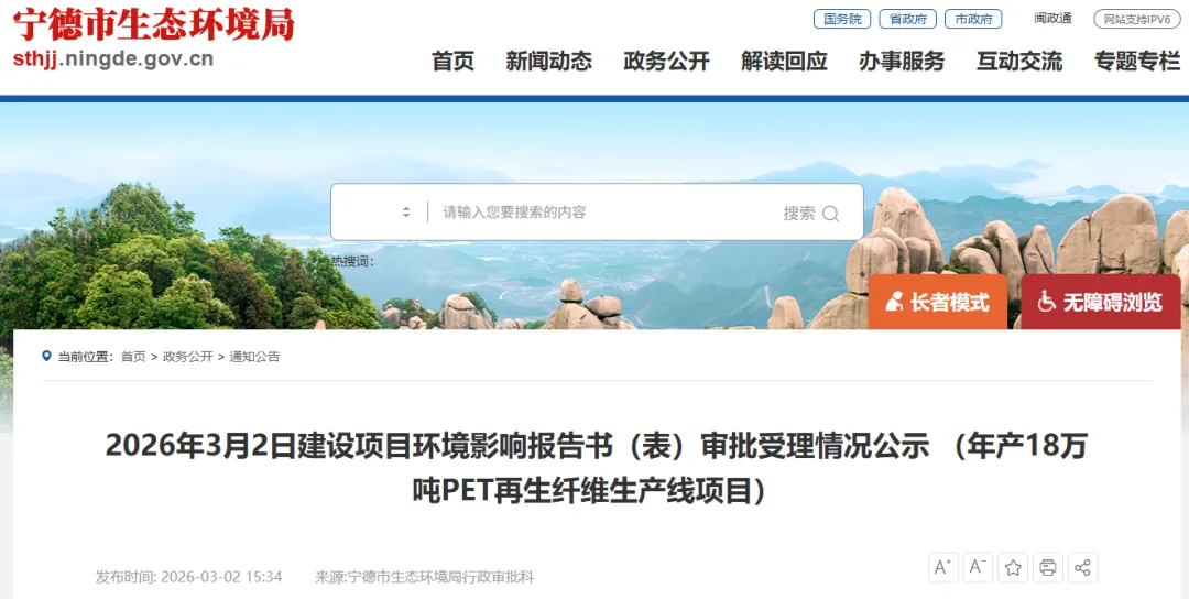 福建霞浦拟建年产18万吨PET再生纤维项目 总投资5.6亿元近日,福建宏盛元科技有限公司年产18万吨PET再生纤维项目正式启动环境影响评价工作,标志着这一循环经济重点项目进入建设筹备阶段。项目选址宁德市霞浦县牙城镇,总投资5.6亿元,规划用地106286.2平方米(约159.43亩),建成后将形成6条PET再生纤维生产线,合计年产能18万吨。 该公司成立于2023年7月,主营业务是利用涤纶织物下脚料、PET切片、PET瓶片及颗粒等回收原料,生产再生涤纶纤维。产品应用领域广泛,涵盖家纺填充、非织造布、土工材料、汽车用纺织品等,市场前景可观。 项目建设紧扣国家产业政策导向。2022年4月,工信部、国家发改委联合发布《关于化纤工业高质量发展的指导意见》,明确提出“十四五”期间要构建高端化、智能化、绿色化的化纤产业体系,提升废旧资源综合利用水平。该项目正是落实这一部署的具体实践,旨在通过物理或化学回收技术,将废弃聚酯转化为高附加值纤维,减少原生资源消耗与碳排放。 根据规划,项目虽在备案中分为五期,实际将合并为两期建设。一期整合原备案一至三期内容,占地约100亩,新建投料仓、造粒车间、纺丝楼及4条生产线;二期整合原备案五期内容,占地约45亩,新增纺丝楼、后纺车间及2条生产线。整体建设周期为60个月。 从技术层面看,PET再生纤维生产需解决杂质分离、粘度调控、纺丝稳定性等关键工艺。项目通过引进先进设备和工艺,有望提升再生纤维品质,使其达到甚至接近原生纤维性能,满足下游高端应用需求。据行业研究,每吨再生涤纶可比原生涤纶减排约3.2吨二氧化碳当量,兼具环境与经济效益。 该项目的落地,不仅将推动霞浦县绿色制造产业升级,也为福建省化纤工业向循环化、低碳化转型提供示范。未来随着项目建成运营,区域废旧聚酯资源综合利用水平有望显著提升,助力实现“双碳”目标。 2026-03-04 【节能环保】 -