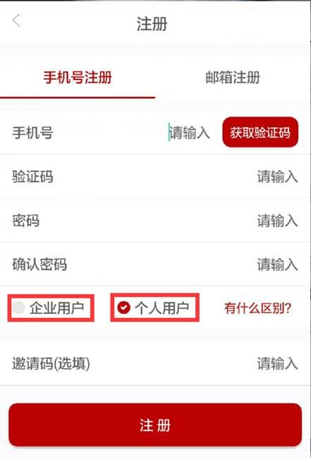 注册为“个人用户”后,您可以再升级为“企业用户”,但您若注册为“企业用户”,则无法降为“个人用户”。所以,您初次登陆时,请选择“个人用户”注册较为稳妥。