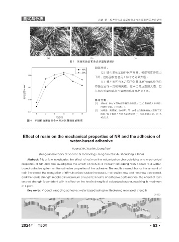 测试与分析 黄鑫 等·松香对 NR 力学性能及水性胶浆附着力的影响