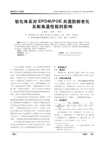 在乙丙橡胶常用的增塑剂中,石蜡烃油的耐热性能要 表 1 实验配方 份