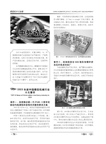 2023 年 9 月 4~5 日,软控在中国国际橡胶技术展 图 2 580 锥形双螺杆挤出压片机