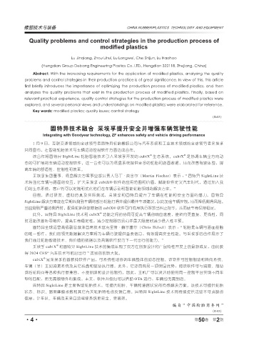 Abstract: With the increasing requirements for the application of modified plastics, analyzing the quality