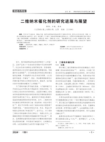 综述与专论 张伟 等·二维纳米催化剂的研究进展与展望