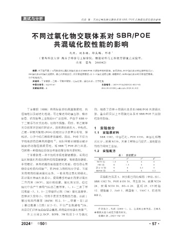 测试与分析 代欣 等·不同过氧化物交联体系对 SBR/POE 共混硫化胶性能的影响