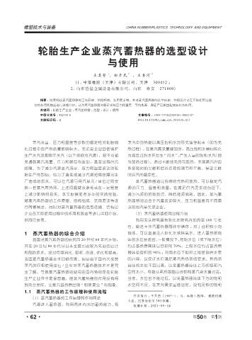 关键词 : 轮胎生产企业 ;蒸汽蓄热器 ;选型 ;设计 ;使用