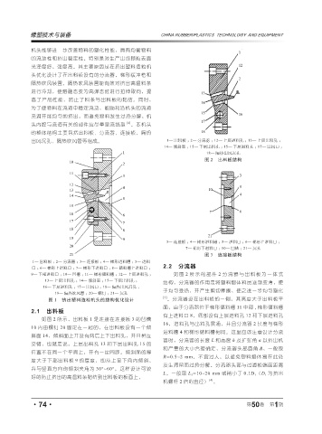 13— 上层出料孔 ; 14— 倾斜面 ; 15— 下层出料孔 ; 结构,分流器的作用是将塑料熔体料层逐渐变薄,便