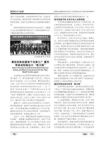 简称 “ 赛轮 新 加坡 ”)与 墨 西哥 当 地企 业 TD “ 走出去 ” 也成为国内头部胎企发展趋势,如赛轮轮胎