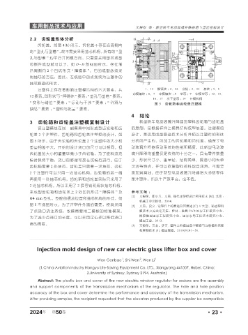 “ 变形与错位 ” 要素 ; “ 运动与干涉 ” 要素 ; “ 外观与 图 5 齿轮箱和齿轮盖注塑模