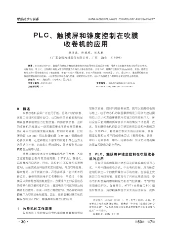 膜收卷机引入 PLC、触摸屏和锥度控制的应用。 作者简介 :林洁波(1985-),男 , 电气工程师,本科,主