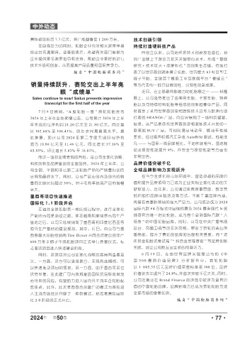 科技创新及品牌建设的全面加持。2024 年上半年,公 品牌价值突破千亿