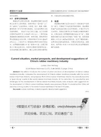 业,世界橡胶机械前 10“ 强 ” 保持 4~5 家 ;四是争取 挑战,我国将在未来 5~10 年成为真正的世界橡胶机