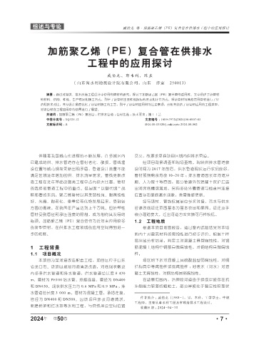 关键词 : 加筋聚乙烯(PE)复合管 ;供排水管道 ;管材比选 ;技术要求 ;施工工艺