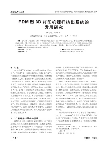行输送、熔融、共混、剪切等优点,其与 3D 打印喷头的结合拓宽了材料范围。本文介绍了 FDM 型 3D 打印螺杆挤出系统的发展,