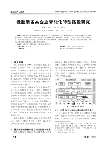 关键词 : 智能制造 ;橡胶装备业 ;离散型 ;智能化转型