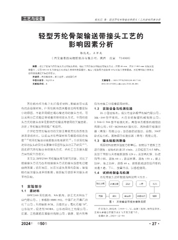 率的影响。 芳纶带接头试样制造流程如图 1 所示 :