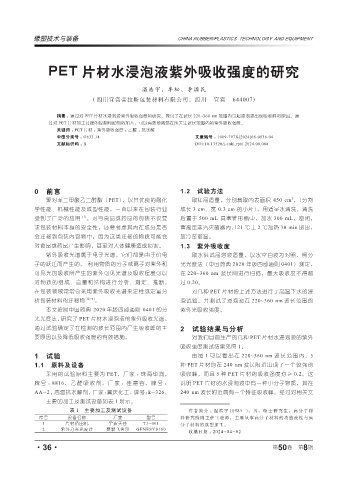 在包装领域常常会采用紫外吸收光谱来定性或定量分 对几种 PET 片材按上述方法进行了高温下水的浸