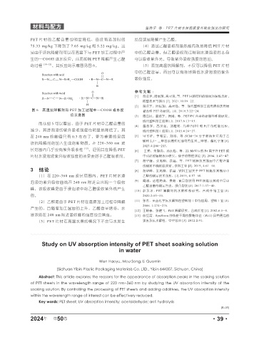 生的—COOH 或水反应,从而抑制 PET 降解产生乙醛 可以吸收紫外光,导致紫外吸收强度的增加。