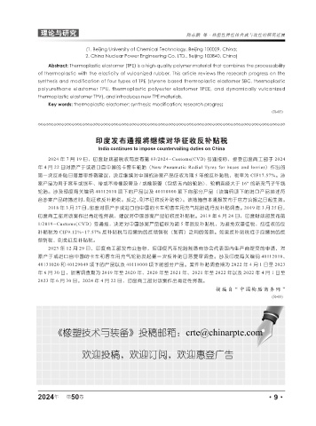 of thermoplastic with the elasticity of vulcanized rubber. This article reviews the research progress on the