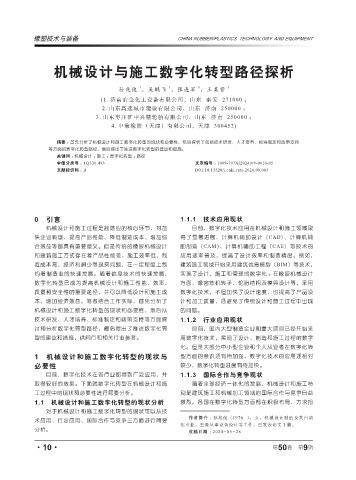 1 机械设计和施工数字化转型的现状与 型方面的意识还有待加强,数字化技术的应用还相对