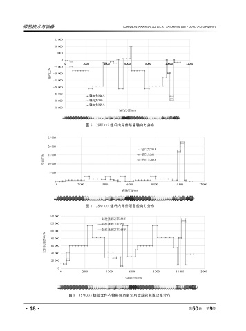 橡塑技术与装备 CHINA RUBBER/PLASTICS TECHNOLOGY AND EQUIPMENT 图 6 JSW335 螺杆内元件所受轴向力分布 图 7 JSW335 螺杆内元件所受径向力分布 图 8 JSW335 螺纹元件内物料经历剪切所造成的耗散功率分布 9 ·18· 第 50 卷 第 期