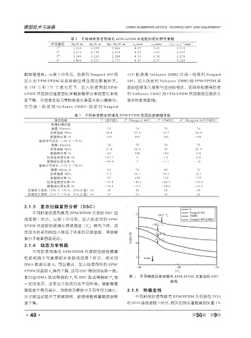 此外由 DMA 测试得到的 T g 和 DSC 测试得到的 T g 有 图 1 不同种类防老剂填充 EPM/EPDM 共混胶的 DSC