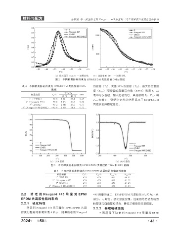 表 4 不同种类防老剂填充 EPM/EPDM 共混胶的 DMA 的温度(T 5 )、失重 50% 的温度(T 50 )、最大热失重温
