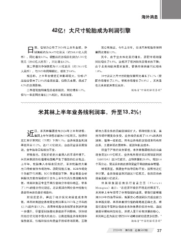 低,米其林集团业务线营业利润率从2023年上半年的 和卓越贡献。米其林重视价值的战略是正确之选,将