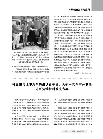 同时致力于提升汽车价值链中材料的循环利用率并减 收材料等替代性原料的更可持续工程塑料,并推动其