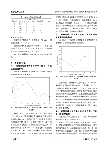 当煅烧高岭土替代量为 15%( 质量分数 ) 时,LDPE 阻 由表 2 可见,当煅烧高岭土替代量为 0~15% 时,