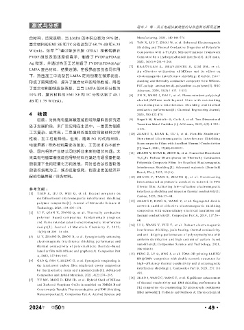 10% 时,复合材料的 EMI SE 和 TC 分别达到了 48.1 [8] JIN X, WANG J, DAI L, et al. Flame-retardant poly(vinyl