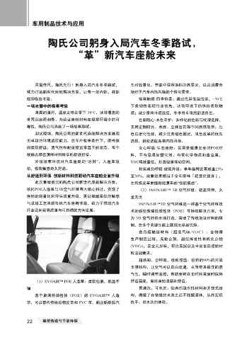 (1)EVOAIR™ POE 人造革:柔软包裹,低温不 舒适温度,保持座舱清新和舒适。