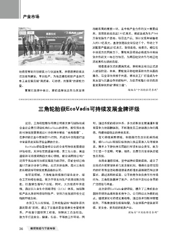 施,通过引入全生命周期评价(LCA)体系,持续降 此次获得EcoVadis金牌评级,提升了三角轮胎在