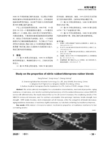 3 结论 [4] 肖建斌,曾凡伟 .NBR/CM 并用胶性能的研究 [J]. 特种橡胶制