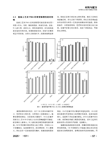 2.3 脱硫工艺对 PMA 的常规物理性能的影 高,胶粉在沥青中更好地分散和溶胀,降低了沥青的