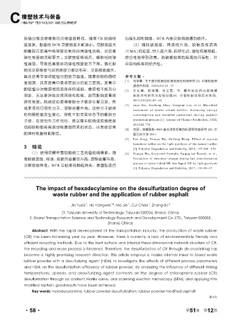 的轻组分对橡胶相的溶胀作用减弱,橡胶相不能充分 [2] 王仕峰,姚鸿儒,张宏雷,等 . 螺杆反应挤出脱硫橡