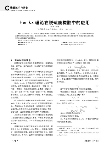关键词 : Horikx 理论 ;脱硫 ; EPDM 橡胶 ;炭黑填料 ;随机链断裂