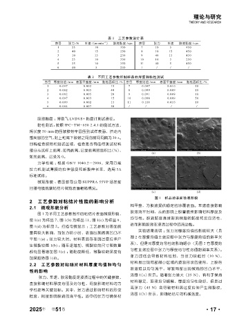 2.2 工艺参数对粘结片材料厚度均值和均匀