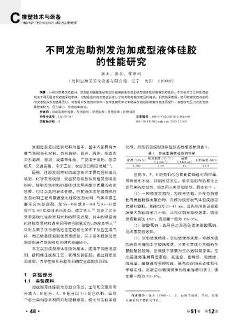 发泡硅胶是以硅胶材料为基体,基体内部具有大 化剂。所选的加成型液体硅胶的性能指标见表 1。