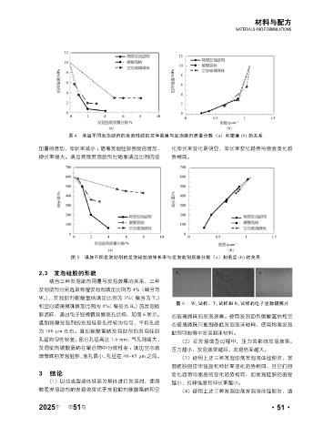 璃微珠的发泡硅胶,泡孔最小,孔径在 40~65 μm 之间。 (3)使用上述三种发泡助剂发泡液体硅胶时,发