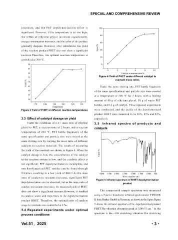 Figure 3 Yield of PHET at different reaction temperatures were conducted, and the yields of the depolymerized