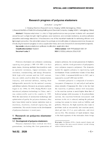 Key words: polyurea elastomer; synthesis; modification; application field